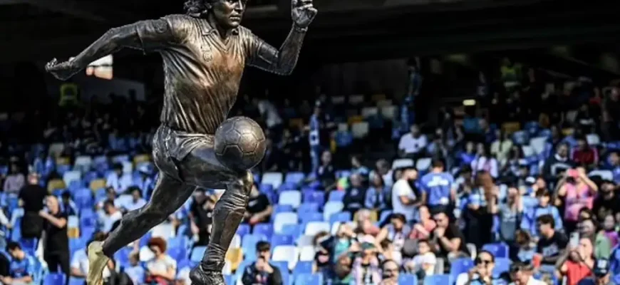 В четверг по улицам Неаполя проехал автомобиль, окрашенный в фирменный небесно-голубой цвет «Наполи». В кузове была статуя покойного Диего Марадоны.